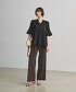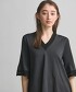 適度開襟的V領,優雅展現鎖骨線條,同時修飾臉部線條,更顯簡約俐落。