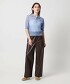 稍短的衣長與有豐富感的下身搭配非常合適。