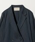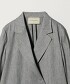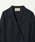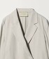 這款四釦雙排釦西裝外套,剪裁時不過度收束腰身,打造出方正俐落的盒狀輪廓。