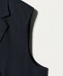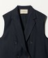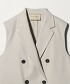 這款中長版背心,設計特色包括輕薄肩墊、西裝領及雙排釦細節。