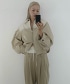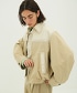 米色採用雙色調,為臉部增添一抹亮色,即使鉚釘細節也營造出柔和的視覺效果。外套採用輕盈透氣 的