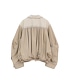 休閒外套飾以大量鉚釘,打造大膽的設計風格。從前到後的褶襉設計勾勒出圓潤的輪廓。寬大的袖子採用褶襉和拼接工藝,是CLANE的標誌性設計。