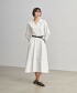 以背後繫帶點綴的傘狀輪廓,能巧妙修飾腰線,營造高挑比例。