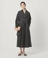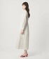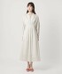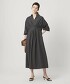 這款打褶洋裝的重點在於腰部拼接處的打褶設計能收束腰線,裙襬則呈現微幅散開的優雅輪廓。