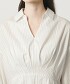 後腰部採用抓皺設計,兼顧穿著舒適度;V領與衣領的精緻平衡,則為整體造型增添優雅洗鍊的氣息。