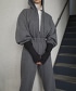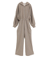 這款寬鬆連身褲配有連帽衫,採用中等厚度的剪裁和縫製上衣,打造完整造型。