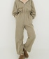 彈性腰帶確保穿著舒適,寬鬆的版型則打造出精緻休閒的風格。褲腳配有抽繩,可依需求收緊腰身。這款連身褲版型 優美