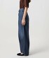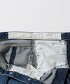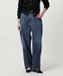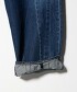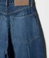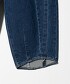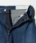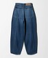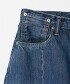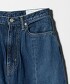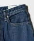 因為將一條牛仔布拆解並重新構建,所以具有獨特的設計,特別是中間的切換和下擺長度的前後差異。