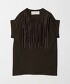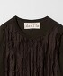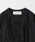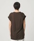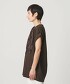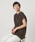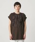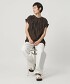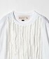 以簡約T恤為基底,搭配異材質布料裝飾正面的短袖上衣,充滿手作工藝感。