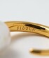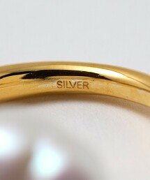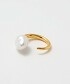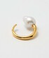 包覆手指的曲線上鑲嵌著閃耀的淡水珍珠的戒指。