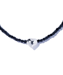 這款項鍊以一顆黑色尖晶石為底,鑲嵌著一顆小巧的心形圖案,散發出夢幻般的光芒,彷彿捕捉到了漆黑的夜空。