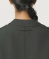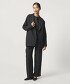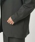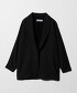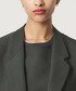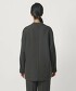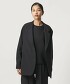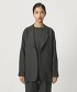 使用具有柔和手感特徵的材料「+10」製作的前無鈕扣設計的翻領夾克。