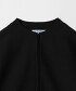 巧妙地在袖口點綴抓褶,搭配飛鼠袖設計,而略短的衣長則綴以背部抓褶,共同塑造出獨特的廓形。