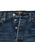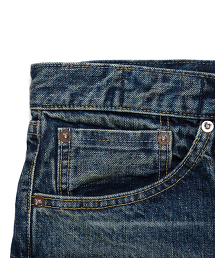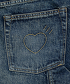 ・ 後臀口袋上以鍊式刺繡工藝呈現心形圖案