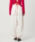 褲腳以鬆緊帶收束,營造出夏日涼鞋或赤足皆能完美展現的獨特褲型,是款匠心獨具的單品。