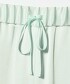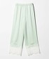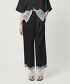 觸感滑順的緞面休閒褲,褲腳精緻的利巴蕾絲透膚感更添輕盈。