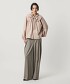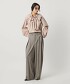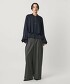 以大膽的腰部不規則打褶為亮點的寬褲。