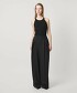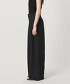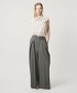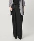 大膽不規則的腰部抓褶是此款寬褲的設計重點。