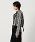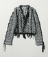 從領子到前襟、袖子中心、身體部分都施加了緞帶的針織粗花呢外套。