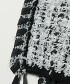 由較長的流蘇線和帶子紗等多種線材組合而成,表情豐富的花呢針織。