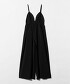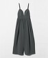 以摩登心形領為亮點的細肩帶連身褲。