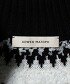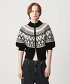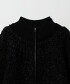 以輕盈且觸感柔和的針織為基礎,結合不同形狀的纖維,如帶狀紗線和流蘇帶,製成北歐圖案緹花針織。