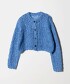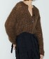 用柔軟蓬鬆的線材粗針編織而成的針織開襟衫。