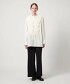 雖然剪裁寬鬆,但採用帶領設計,讓人感受到清新與高貴的氣息。