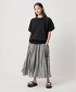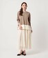 從腰部下方的細緻褶皺逐漸變化為喇叭形狀,展現出優雅而柔和的印象。