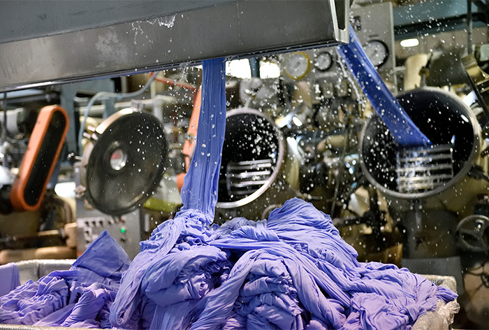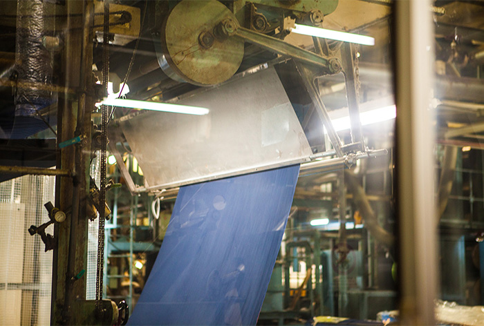 將從紡織廠進貨來未加工過的布料進行整理,尼龍羽絨衣所使用的高密度尼龍布即便在日本也是屈指可數,使用NIGEL CABOURN染色機,耗費工時、緩緩的細心的進行染色。