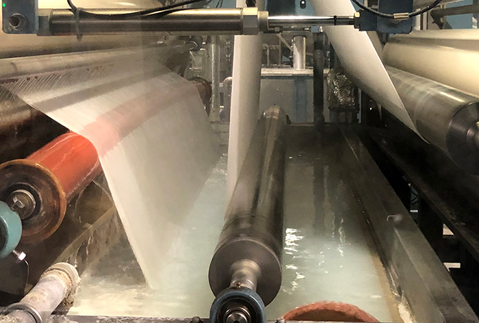黏上特殊的防潑水劑,完成具有防潑水效果的布料。