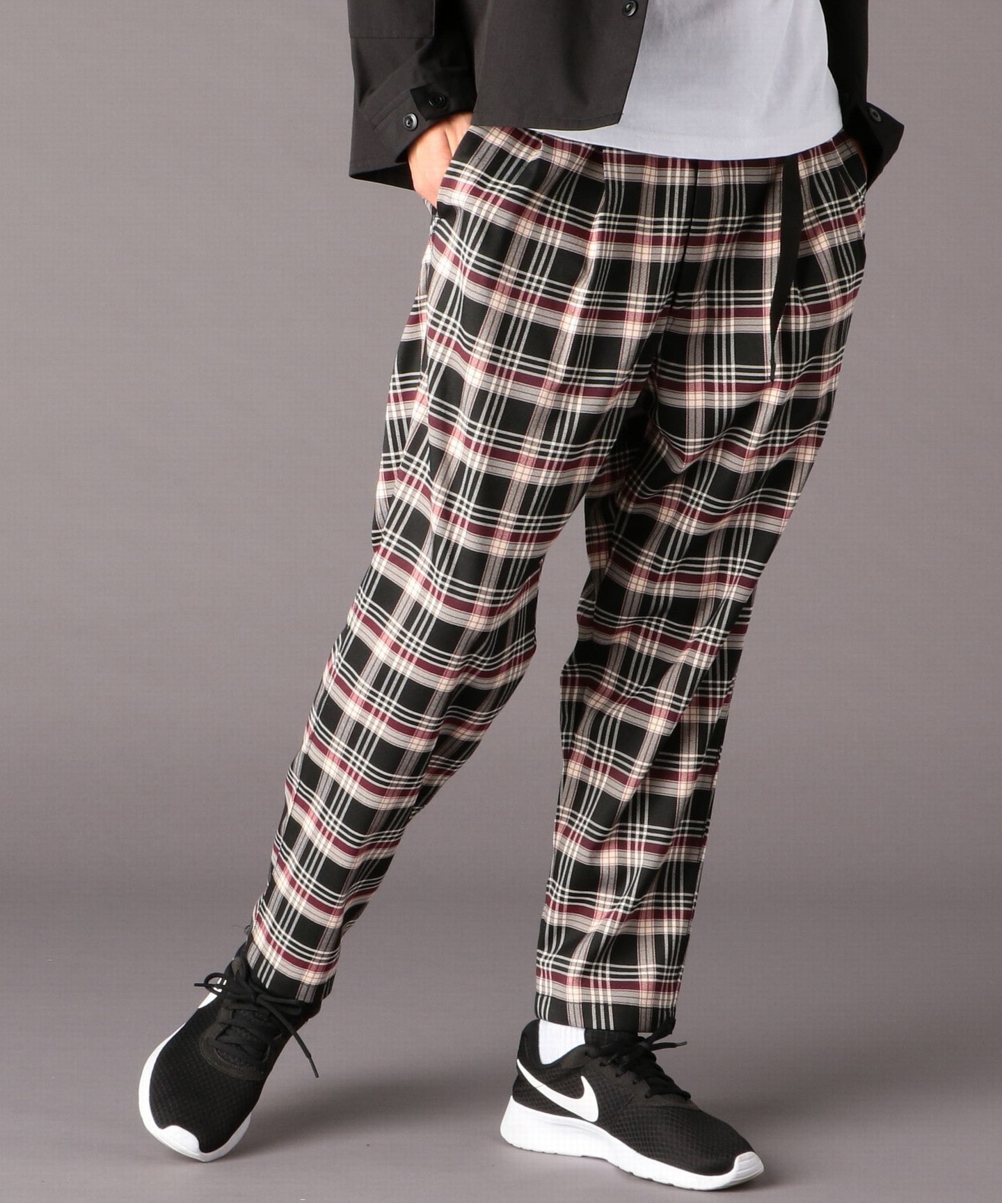 UTILITY LINE 彈性格紋雙摺飛鼠褲