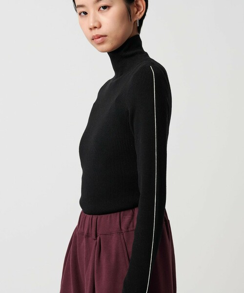 <CITEN>蓬鬆袖配色畦編針織