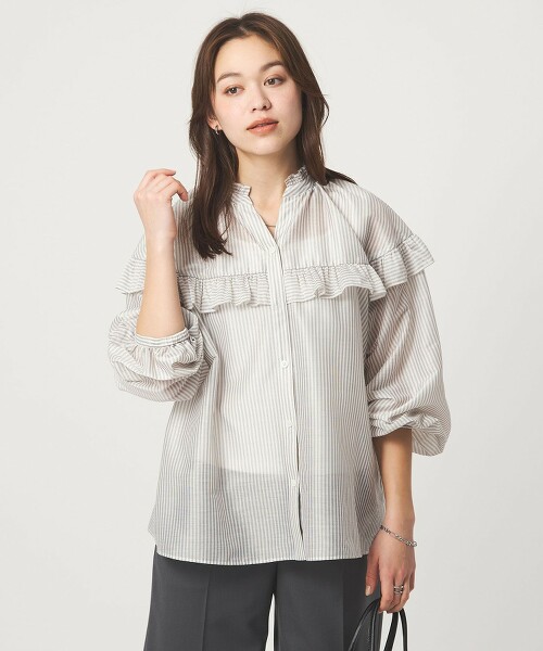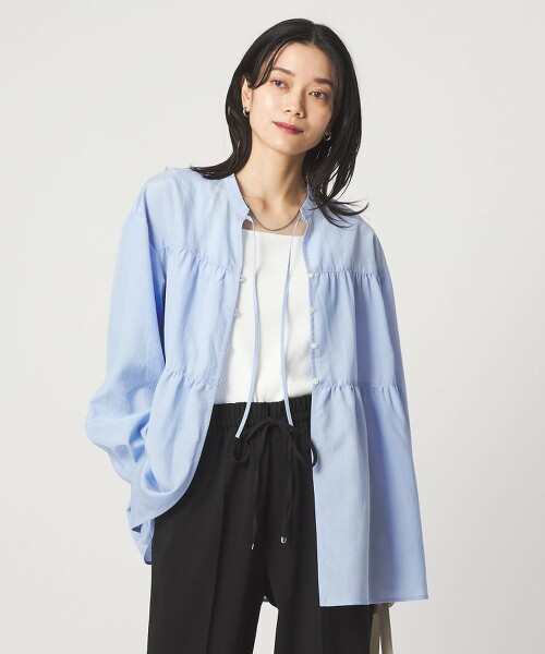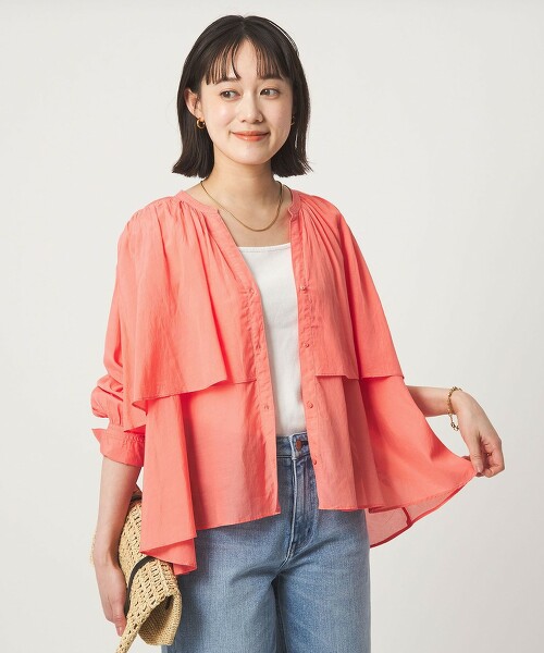 KARL MAYER fabric 抵肩褶邊透氣罩衫